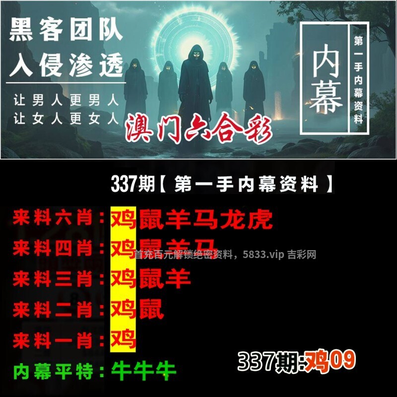 | 337期:【家禽】主【马狗牛】开:鸡09准 主博⑥码【36.24.32.08.41.05】 |
